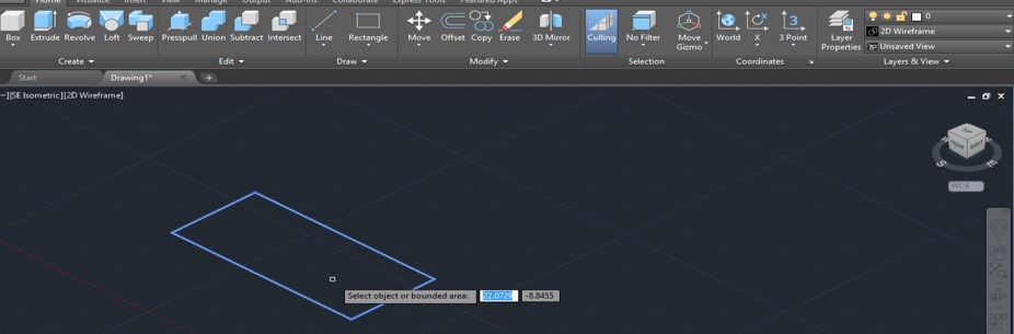 الخطوة 6: الآن سيبدو المستطيل هكذا عند تغيير عرض الرسم، انتقل الآن إلى قائمة “إنشاء” في علامة تبويب الصفحة الرئيسية (Home) في هذا البرنامج وانقر على أيقونة الأمر (Presspull) للحصول عليها.