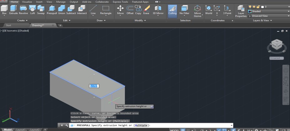 بهذه الطريقة يمكنك استخدام الأمر (PressPull) من قائمة إنشاء علامة التبويب الصفحة الرئيسية في (AutoCad) واستخدامها لعمل نماذج للرسم في مشروعك.