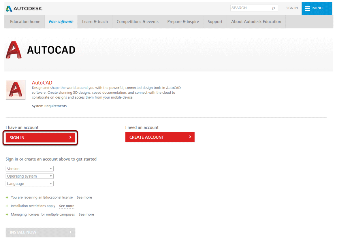 الخطوة 5: إذا قمت بالتسجيل بالفعل فانقر فوق تسجيل الدخول وسيتم إعادة توجيهك إلى معلومات تسجيل الدخول إلى (Autodesk)، بخلاف ذلك انقر فوق إنشاء حساب وأنشئ حسابًا جديدًا باستخدام معرف البريد الإلكتروني الخاص بك.