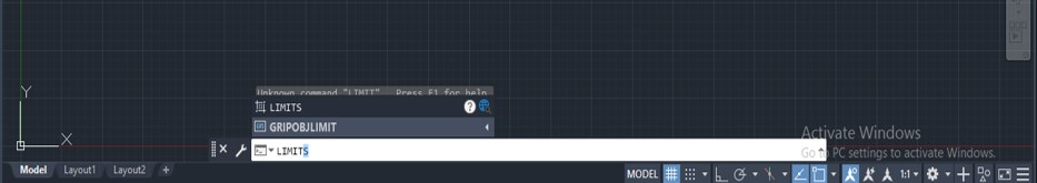 الخطوة 14: الآن عليك تعيين الحد الأقصى للرسم الخاص بك لرسمك، حيث يجب وضع حدًا لتحديد منطقة الرسم الخاصة بنا، لذا خذ قيمة الحد أكثر من أبعاد الرسم لأنه بدلاً من الرسم يجب أن نذكر بعض النقاط الأخرى في ورقة رسم واحدة في كاد تلقائي، لتحديد حد اكتب (Limit) من لوحة المفاتيح ثم اضغط على زر (Enter) بلوحة المفاتيح.